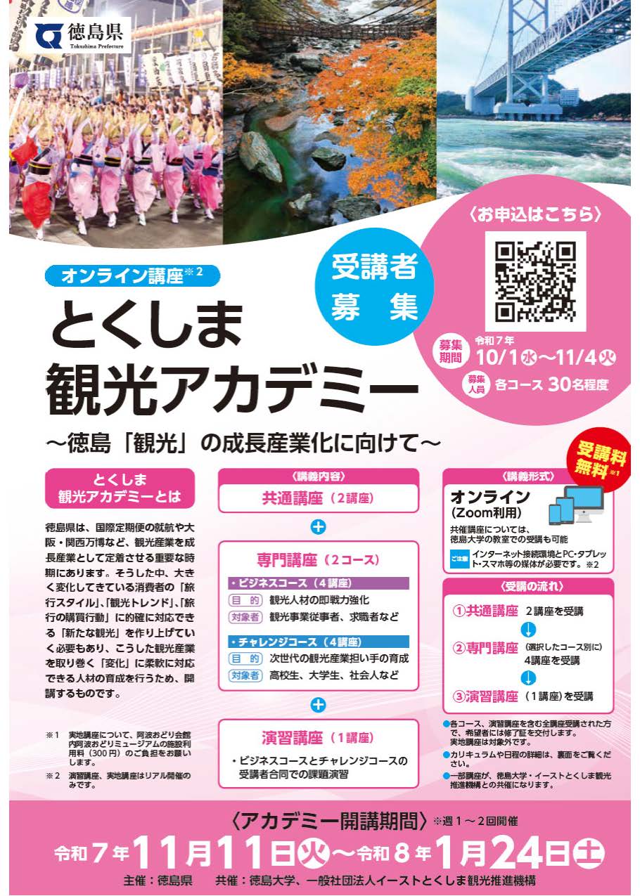 とくしま観光アカデミーの受講者募集!!【11月4日まで】