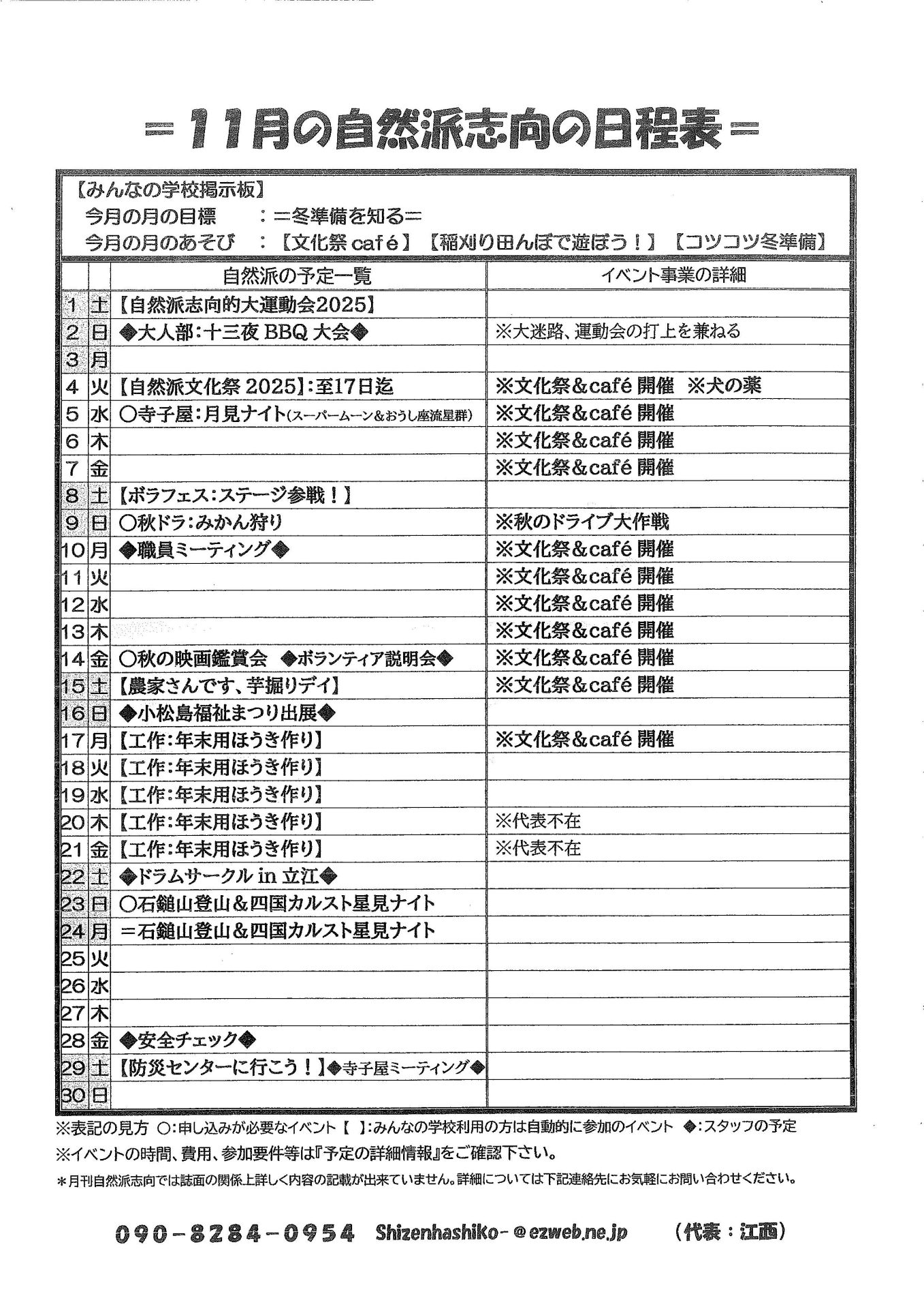 ●:申し込みが必要なイベントです。