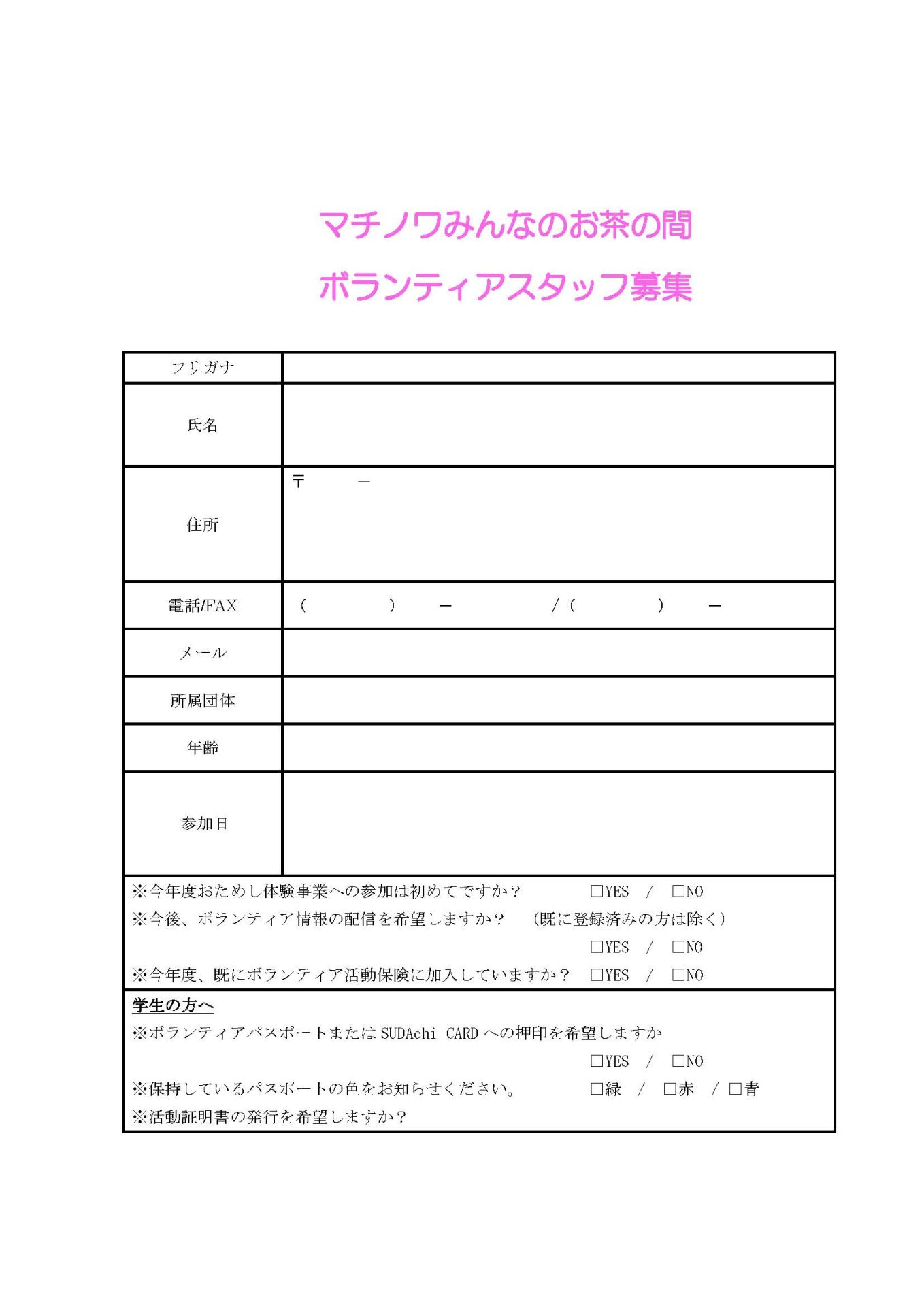 「マチノワみんなのお茶の間 ボランティアスタッフ募集(2026年4月)
